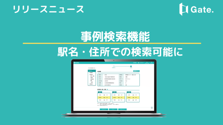 収益査定機能における周辺事例との比較説明追加 Gate.の収益査定結果ページに、Gate.査定値と周辺事例の㎡単価を比較表示する機能が追加されました。 これによりGate.が査定した㎡単価を、選択した周辺事例の最安㎡単価・最高㎡単価・平均㎡単価と比較することが簡単になりました。 比較した内容が表示されることで、査定の根拠として周辺相場との整合性を示すことができ、お客様への査定根拠の説明に活用いただ […]