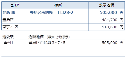 池袋近隣の公示地価は、505,000円です。