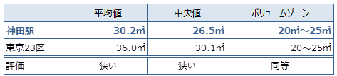 神田の専有面積のボリュームゾーンは、20㎡から25㎡です。