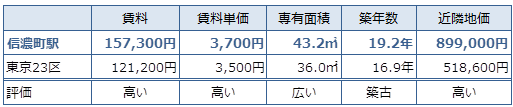 東京23区の賃料の平均が121,200円であるのに対して、信濃町の賃料平均の水準は高い傾向があります。