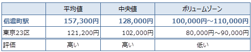 東京23区の賃料のボリュームゾーンが8万円から9万円であるのに対して、信濃町の賃料ボリュームゾーンの水準は高い傾向があります。