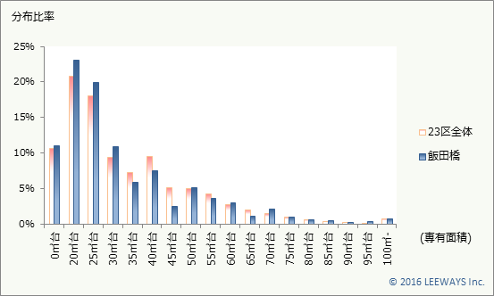 飯田橋の専有面積のボリュームゾーンは、20㎡から25㎡です。