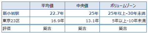 新小岩の築年数のボリュームゾーンは、築25年から30年です。