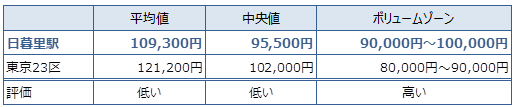 日暮里の賃料の平均値は、109,300円です。
