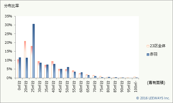 赤羽の専有面積のボリュームゾーンは、25㎡から30㎡です。