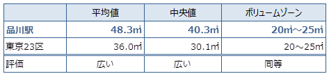 品川の専有面積のボリュームゾーンは、20㎡から25㎡です。