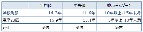 浜松町の築年数のボリュームゾーンは、築10年から15年です。