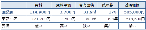 東京23区の賃料のボリュームゾーンが8万円から9万円であるのに対して、池袋の賃料ボリュームゾーンの水準は同じくらいです。