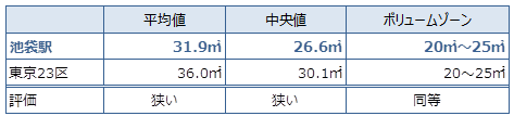 池袋の専有面積のボリュームゾーンは、20㎡から25㎡です。