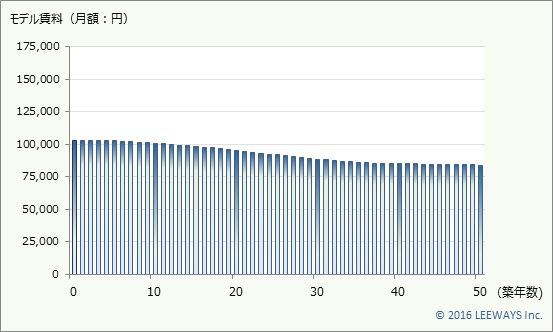 モデル物件で長期間の賃料を推計したものです。