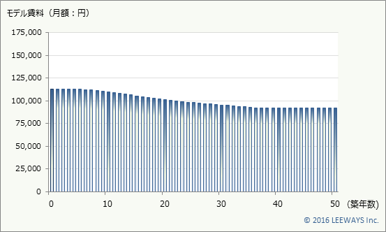 モデル物件で長期間の賃料を推計したものです。