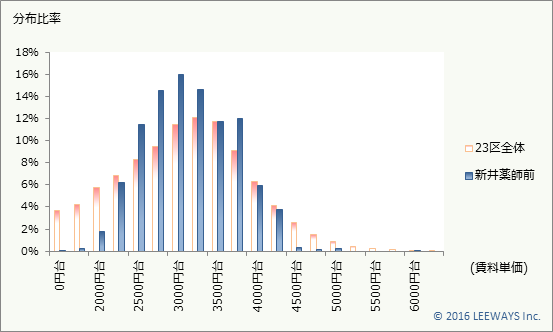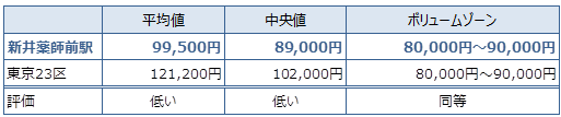 東京23区の賃料のボリュームゾーンが8万円から9万円であるのに対して、新井薬師前の賃料ボリュームゾーンの水準は同じくらいです。
