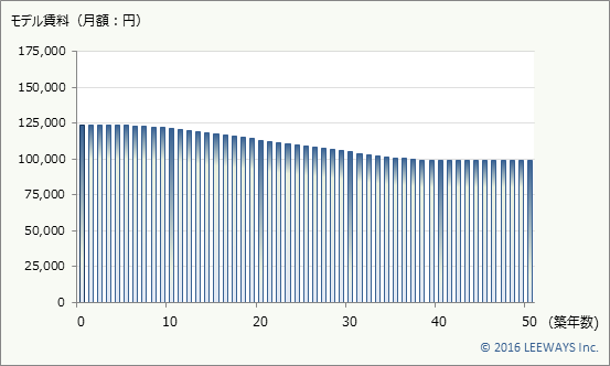 築年数の経過による賃料減価の影響は、比較的大きなエリアと推計されます。