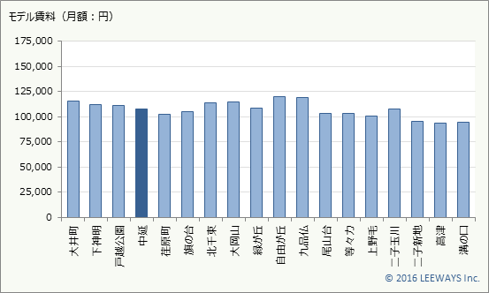 東京23区の賃料の平均が121,200円であるのに対して、中延の賃料平均の水準は低い傾向があります。