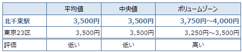 北千束の賃料単価のボリュームゾーンは、3,750円から4,000円です。