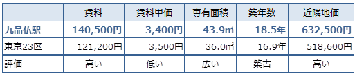 東京23区の賃料の平均が121,200円であるのに対して、九品仏の賃料平均の水準は高い傾向があります。