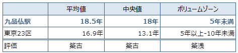 九品仏の築年数の平均は、築18.5年です。