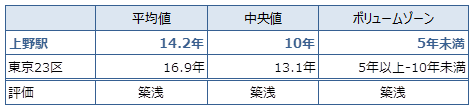 上野の築年数の平均は、築14.2年です。