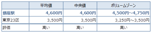 東京23区の賃料の平均が121,200円であるのに対して、銀座の賃料平均の水準は高い傾向があります。
