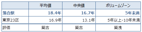 東京23区築年数の平均が16.9年であるのに対して、築年数の平均の水準は古い傾向があります。