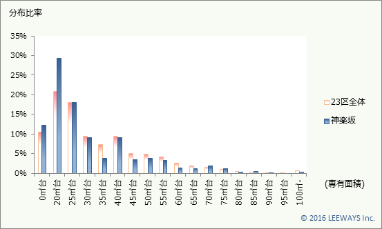 神楽坂の専有面積のボリュームゾーンは、20㎡から25㎡です。