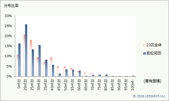 若松河田の専有面積のボリュームゾーンは、20㎡から25㎡です。