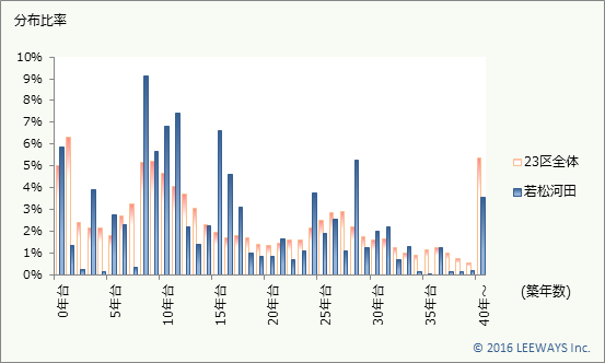 東京23区の築年数のボリュームゾーンが築5年から10年であるのに対して、築年数の水準は同じくらいです。