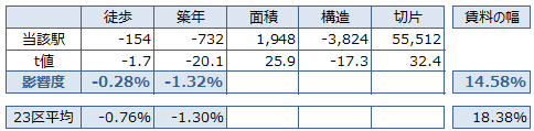 ■ 賃料のポテンシャル:低い(賃料の幅:若松河田 14.58%、23区平均 18.38%)