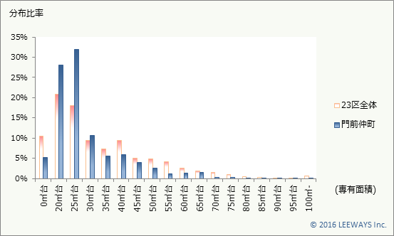 門前仲町の専有面積のボリュームゾーンは、25㎡から30㎡です。
