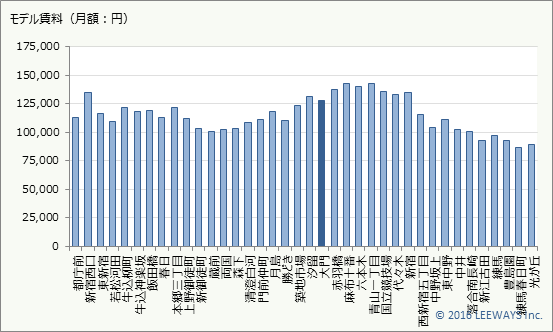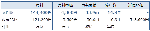 東京23区の賃料の平均が121,200円であるのに対して、大門の賃料平均の水準は高い傾向があります。