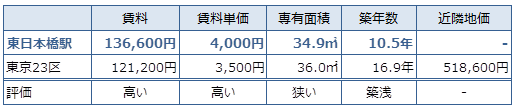 東京23区の賃料の平均が121,200円であるのに対して、東日本橋の賃料平均の水準は高い傾向があります。