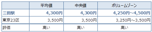 東京23区の賃料の平均が121,200円であるのに対して、三田の賃料平均の水準は高い傾向があります。