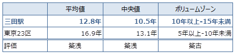 三田の築年数のボリュームゾーンは、築10年から15年です。