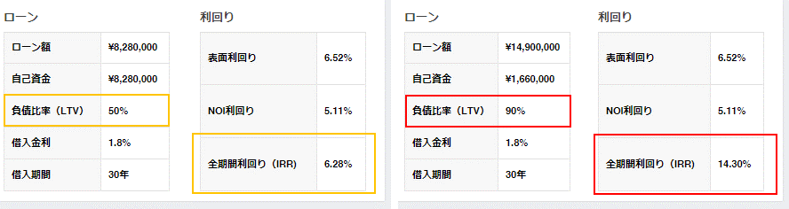 同じLTV、同じローン期間、金利で投資した場合を比較します。