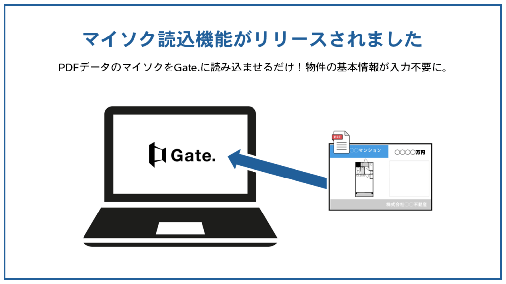 マイソクのPDFデータをGate.にアップロードして読み込ませるだけで、物件情報が自動入力できる「マイソク読込機能」が追加されました。