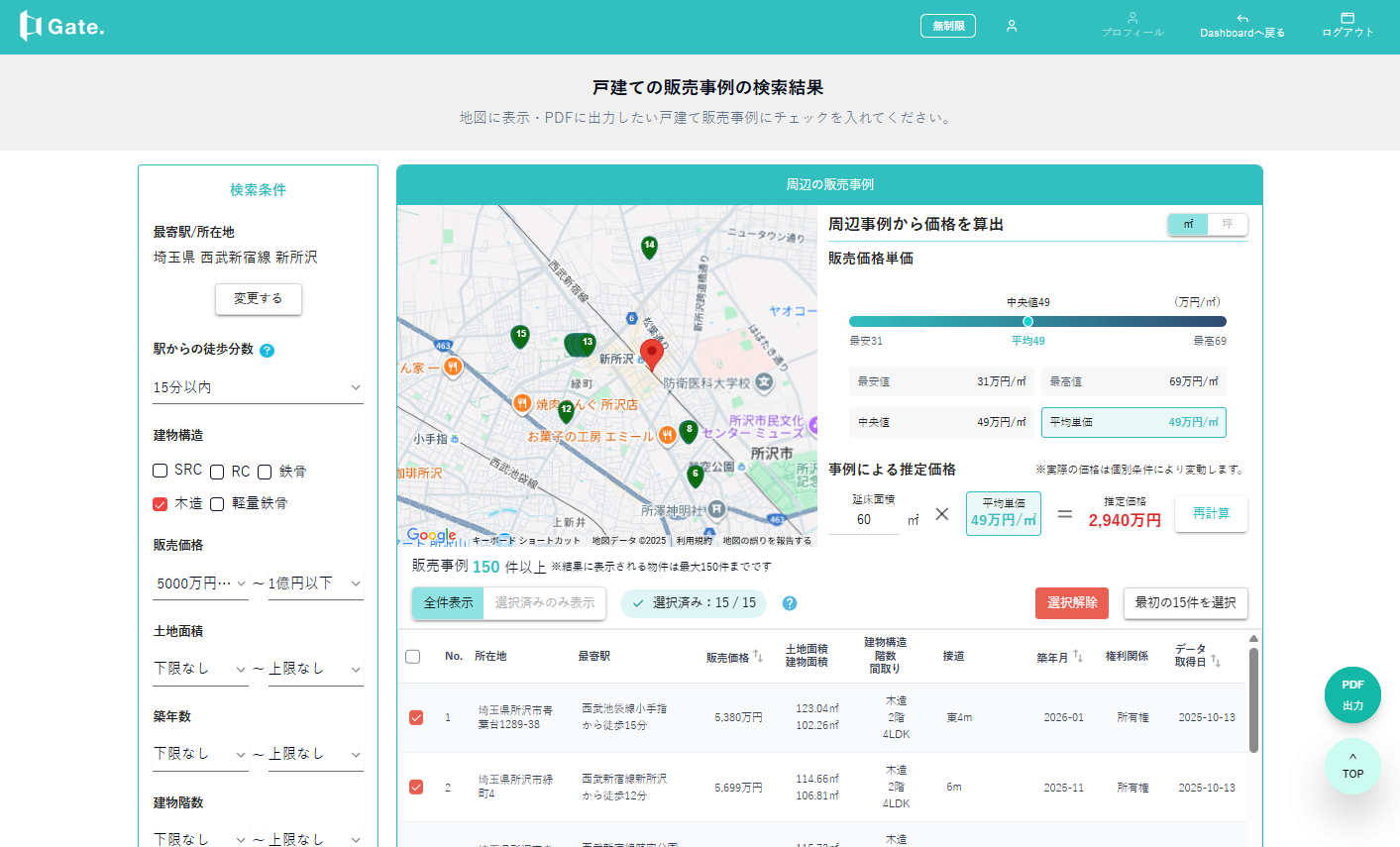 不動産価値分析AIクラウド「Gate.」の事例検索機能が大幅アップデートされました。